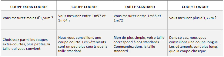 Vous avez un large choix de coupes adaptées à toutes les silhouettes :